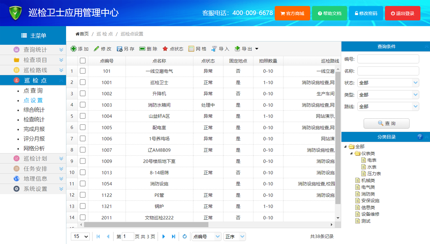 巡检点是风控卫士中的最核心的管理元素,巡检工作都是针对巡检点展开。