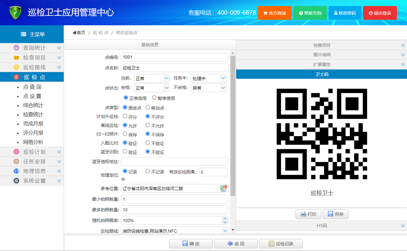 1、在风控卫士中应用管理中心创建一个巡检点后,然后打开巡检点设置界面: