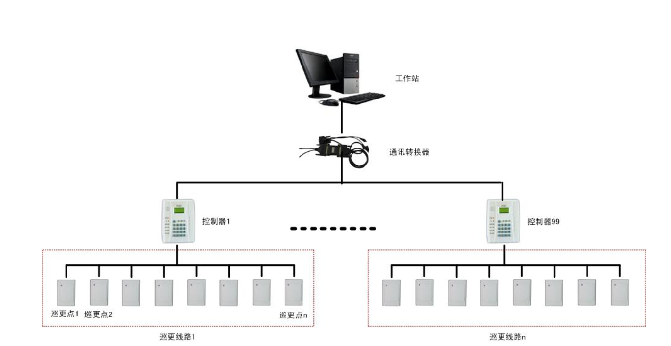 随着网络及电子技术的发展,电子巡检出现了,早期的电子巡检依线而进, 所达之处需要进行综合布线, 巡检人员按布线的范围进行检查。它的缺点是施工量大,成本高,容易受到温度、湿度、布线范围的影响,安装维护也比较麻烦,而且对于已装修好的建筑而言,要重新进行配置也显得较为困难;另外,室外安装的传输线路也容易遭受人为的破坏。